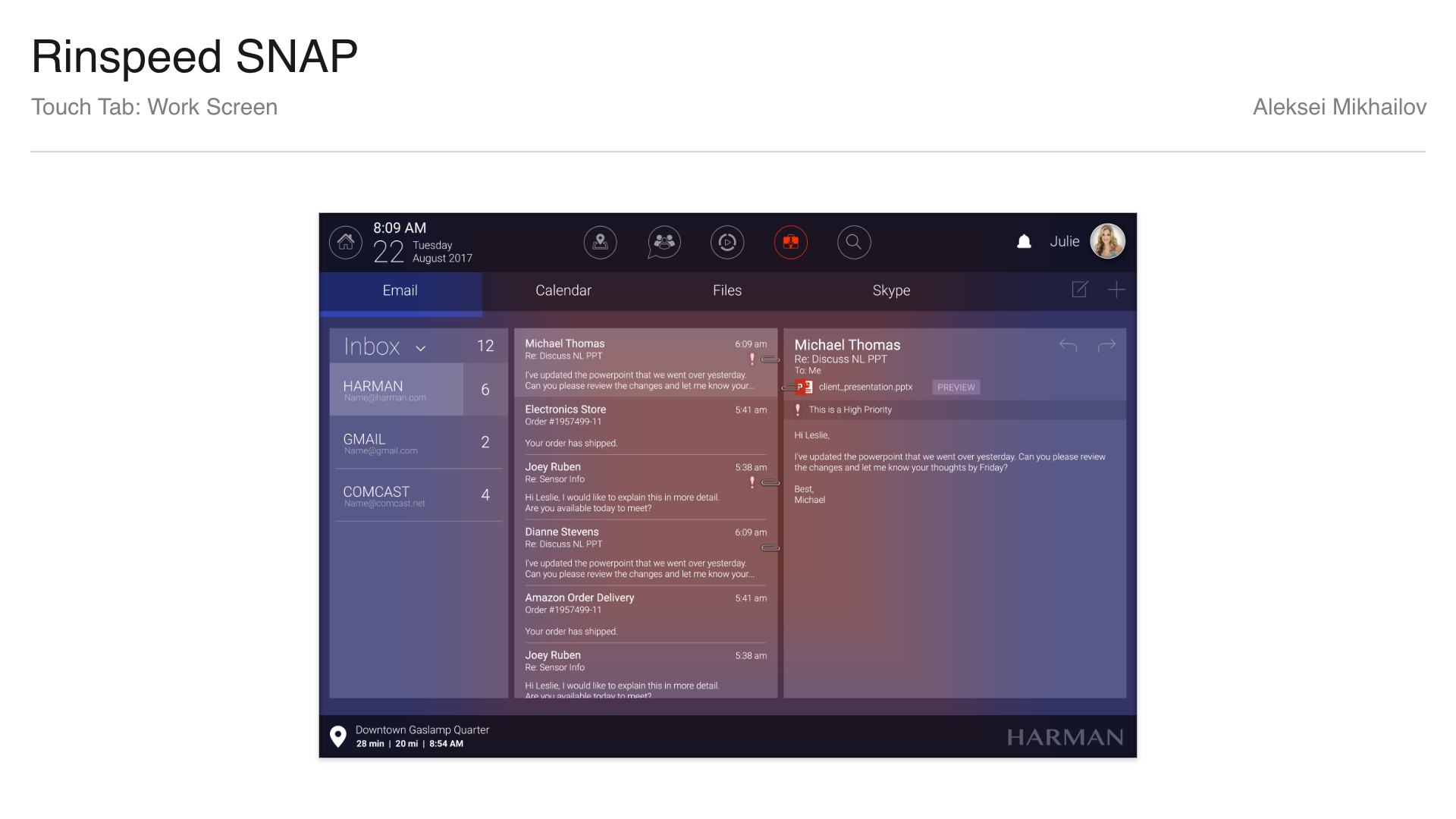 I was leading the Personal Control Panel (PCP) UX design concept, Visual design and UI animations creation for PCP screens and In-Vehicle Infotainment (IVI) screens.