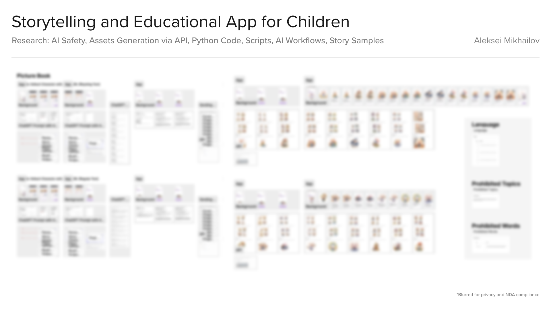 I tested, designed and built the generative AI pipeline: developing and stress-testing prompts for reliable output, writing Python scripts for automated asset generation, and implementing multi-layered safety mechanisms to filter and validate every piece of AI-generated content before it could reach a child.